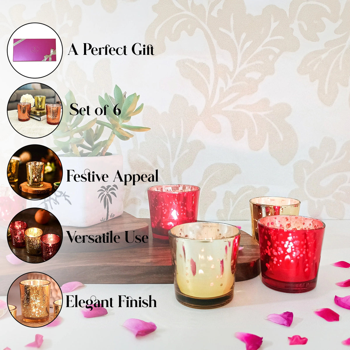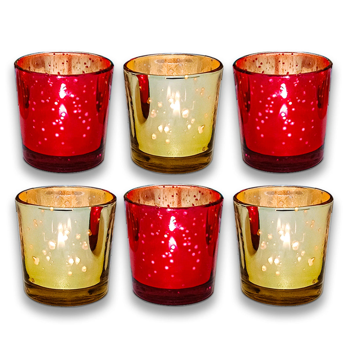 - Each set of 6 has 3 Red and 3 Gold colored Votive Holders