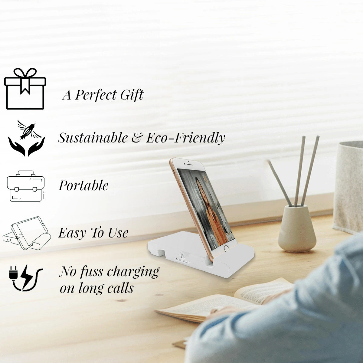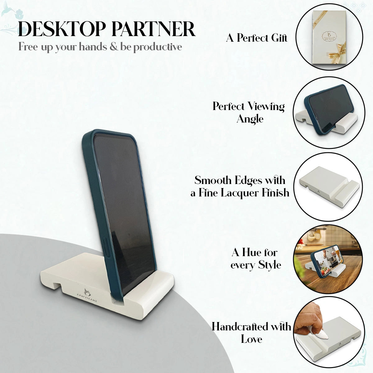 - Each Phone Stand comes with a beautiful lacquered finish