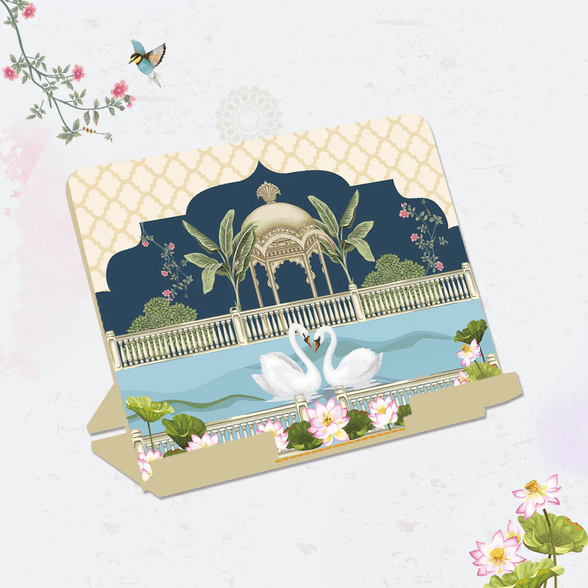 Step into the grandeur of Hans Mahal, a luxurious iPad stand designed with regal motifs and intricate detailing. Inspired by the beauty of royal palaces and surreal calm, this handcrafted wooden tablet stand ensures ergonomic support and refined elegance. Perfect for professionals, students, and home décor lovers.