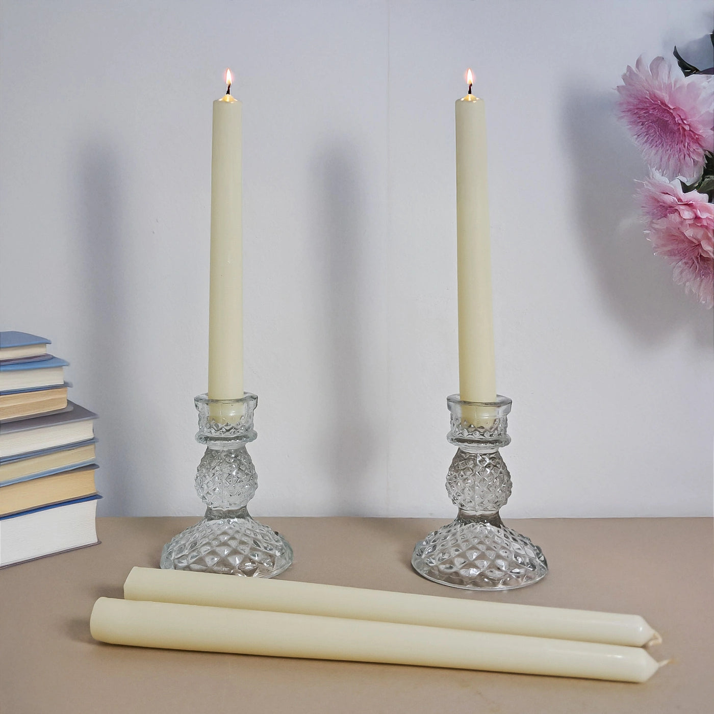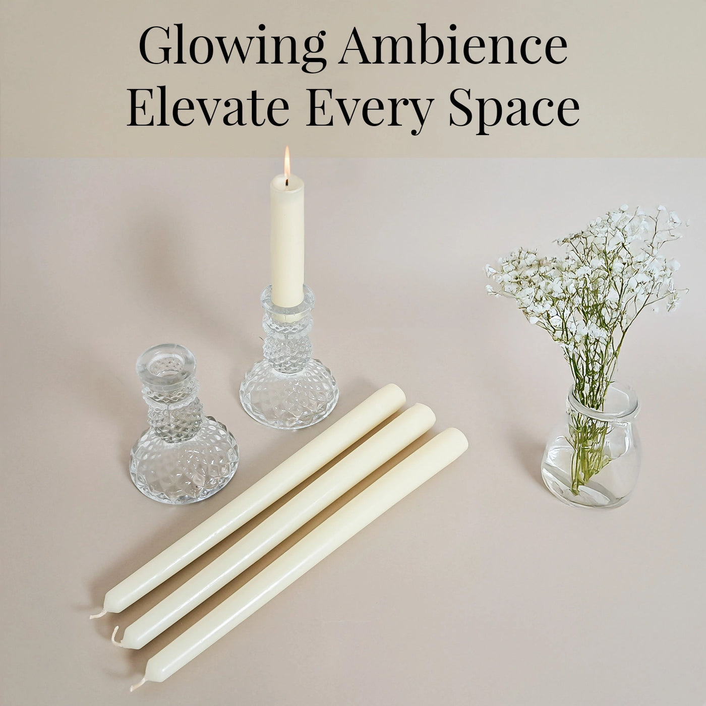 - Elegant ivory taper candles, unscented and timeless, designed to bring a serene glow to every occasion