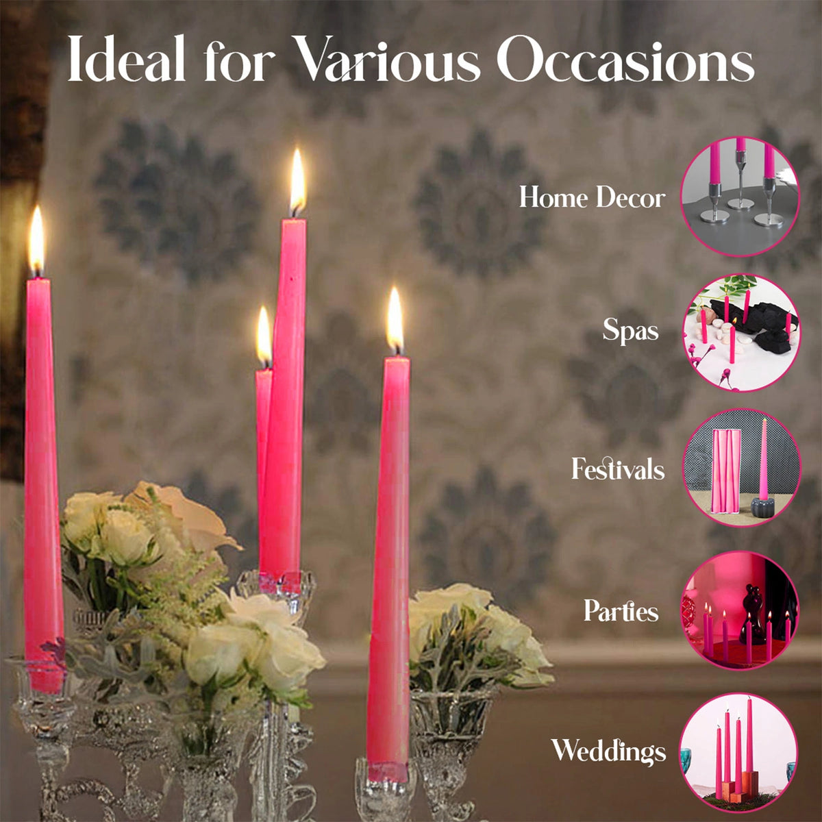 Bold and vibrant, our Hot Pink Taper Candles are designed to make a statement. Their striking shade of hot pink brings a playful elegance to birthday celebrations, weddings, themed parties, or romantic dinners.