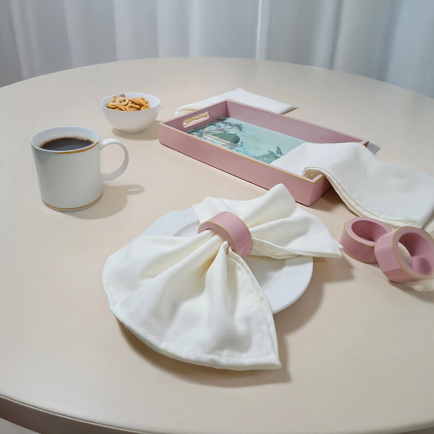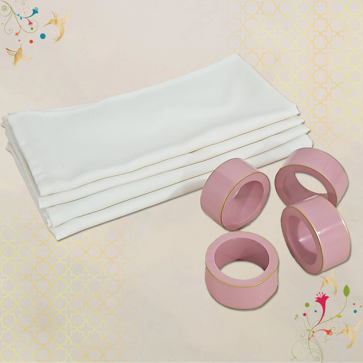 Baby Pink Handcrafted Solid Color Napkin Rings & Cloth Napkins Combo Set