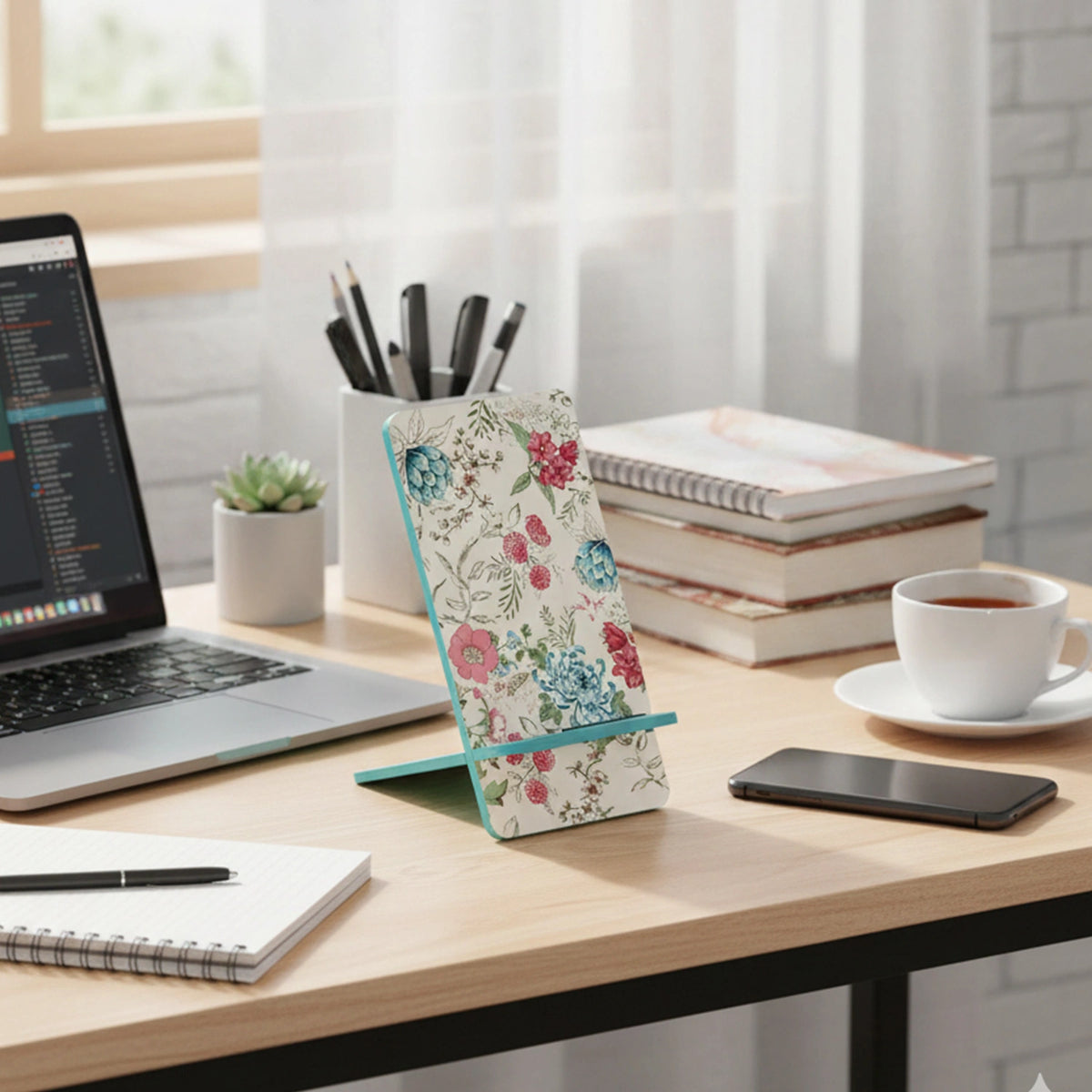 Pink & Blue Bouquet Interlocking Cell Phone Stands for Desk