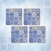 Enhance your table settings and bring the elegance of Portuguese azulejos to your home with our Portuguese Blue Tiles Coaster Set. Designed with stunning blue, ochre and white tile motifs, this set of 4 coasters with a stand is a tribute to the timeless beauty of ancient Portuguese ceramics. Each set of 4 Coasters comes with a handy stand to facilitate use, while also serving as an artistic décor piece.