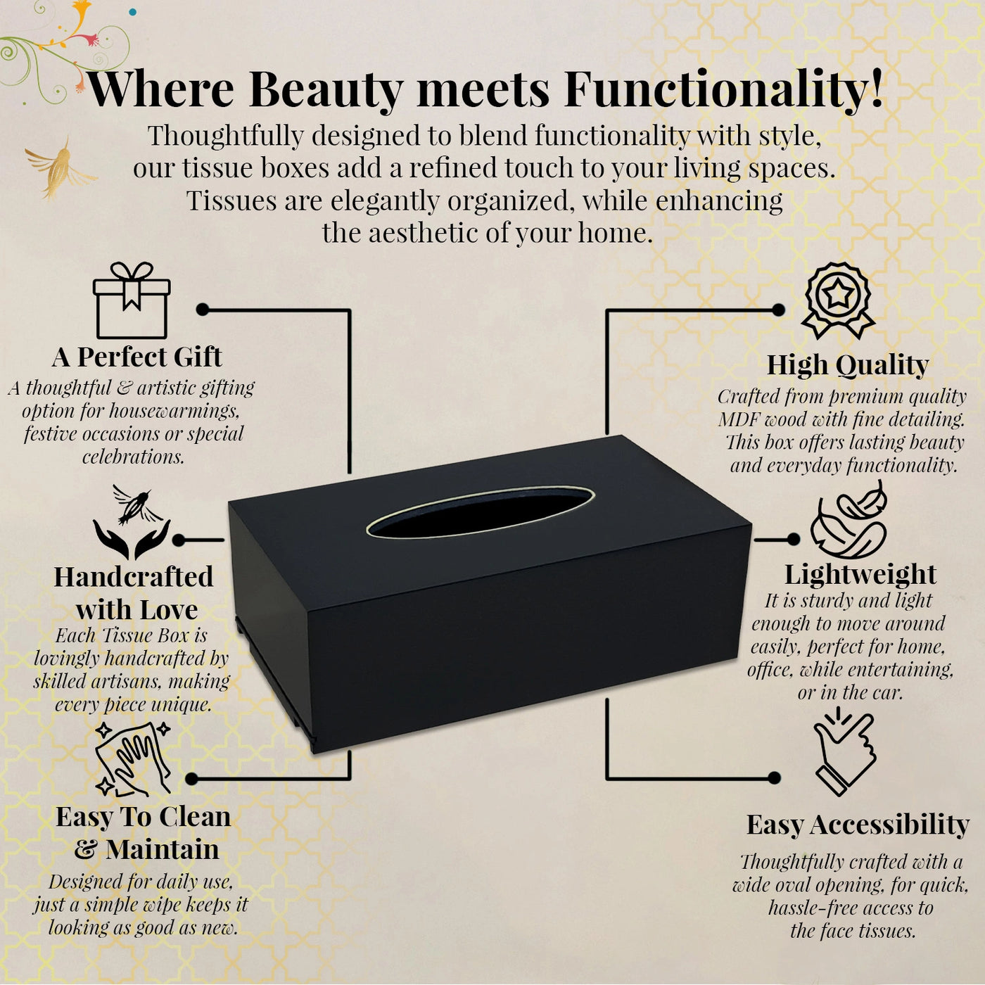 - Each face tissues holder comes with a beautiful lacquered finish