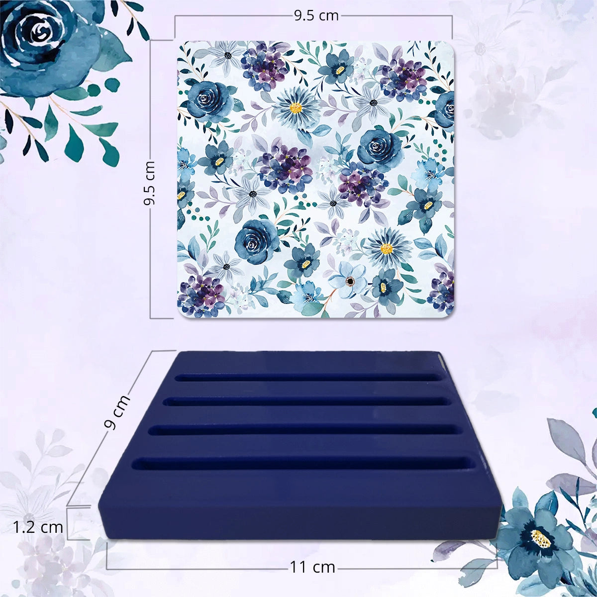 Elevate your table décor with the Indigo Roses coaster set, featuring a striking deep blue floral design. Enhance your table settings with this exquisite set of 4 handcrafted MDF coasters complete with a free stand, designed to combine functionality and elegance.