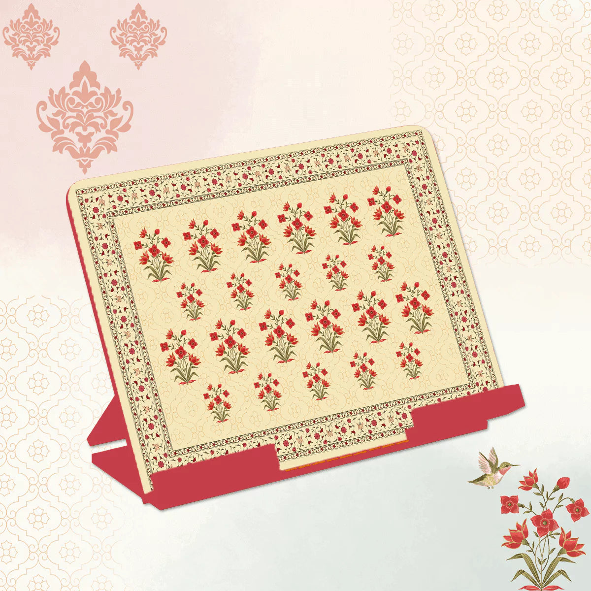 Inspired by the rich heritage of Mughal art, our Mughal Flowers iPad Stands feature exquisite floral motifs in an elegant and timeless design. This foldable tablet stand ensures comfortable hands-free use while adding an artistic flair to your workspace. Ideal for those who appreciate traditional & cultural elegance in their everyday essentials.