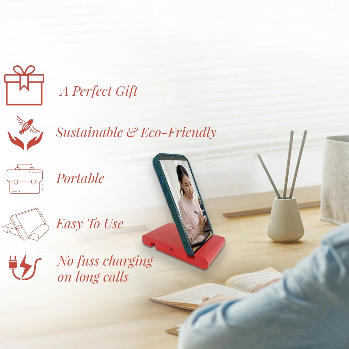 Vibrant, bold, and full of personality. This striking pink, red stand adds an energetic touch to your workspace while keeping your phone steady for video calls, messages, and browsing. The perfect gadget companion for those who love a pop of color.